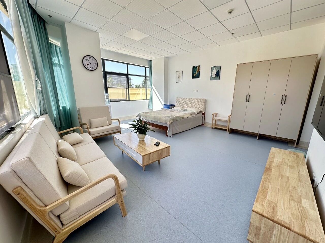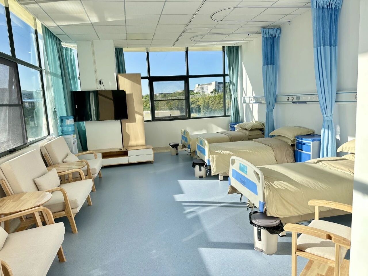 位于海东的大理市第一人民医院医康养中心,依山面海,环境清幽。中心内,适老化家具圆润防撞,智能电视操作简便,床头呼叫设备触手可及,无障碍设计遍布每一个角落。