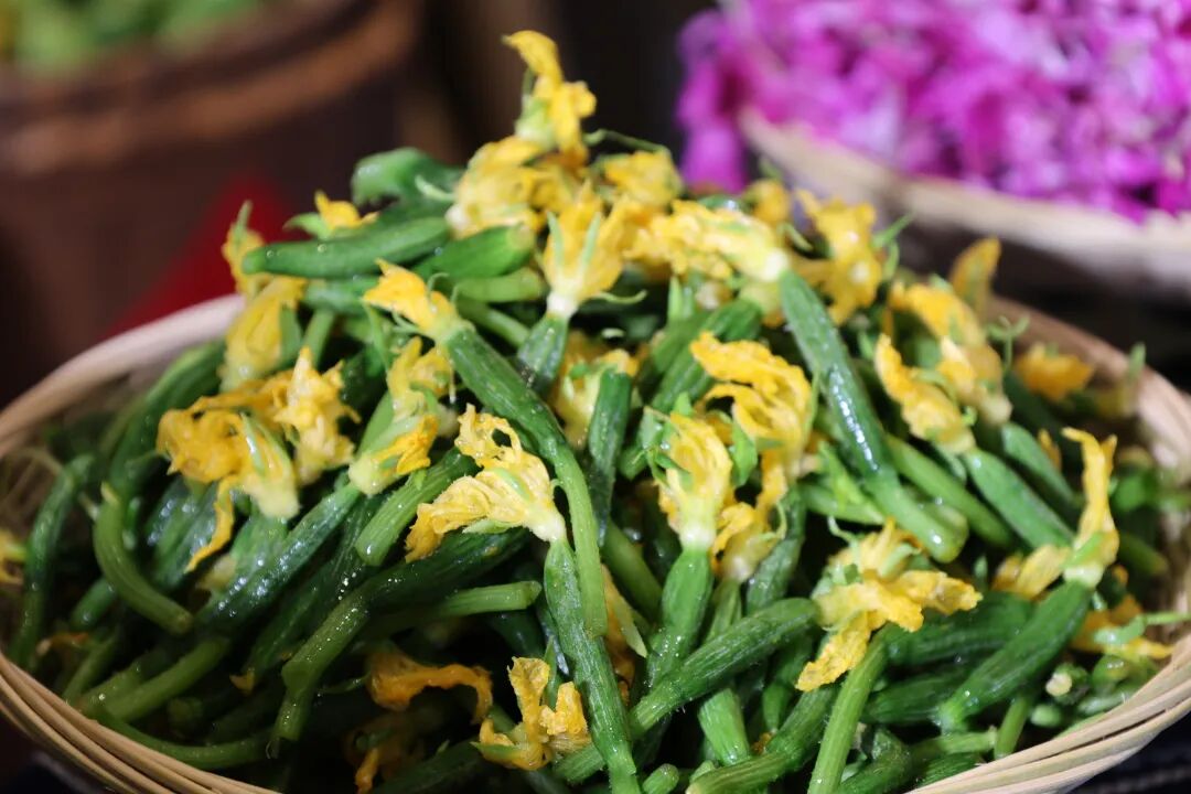 鲜嫩的黄瓜花,自带黄瓜的清新香气,洗净后直接凉拌,口感脆嫩多汁。一口咬开,汁水在舌尖迸发,满是春日的脆嫩清爽,是春日独有的“小清新”滋味。