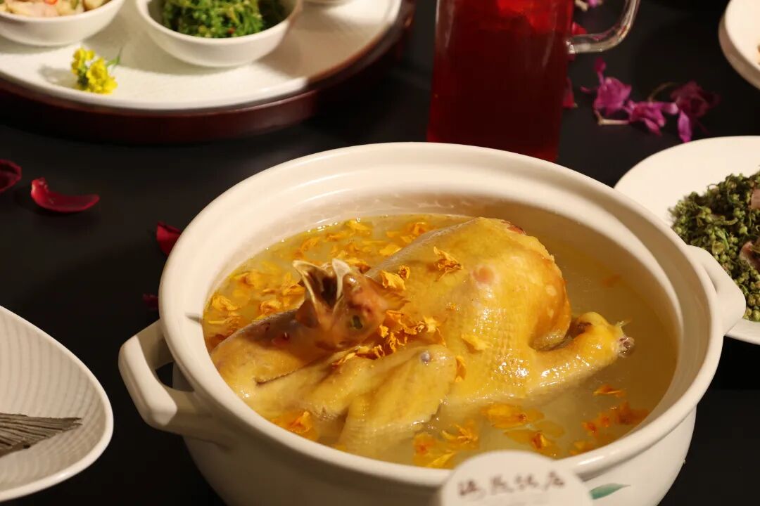 这道菜是春宴的温润滋补之味。整鸡与石斛花慢火煨炖,汤色清亮微黄,石斛花的清润清香缓缓融入汤中,鲜而不腻,暖而不燥。喝上一碗,从舌尖暖到心底,卸下一身疲惫,尽享春日食补的惬意。