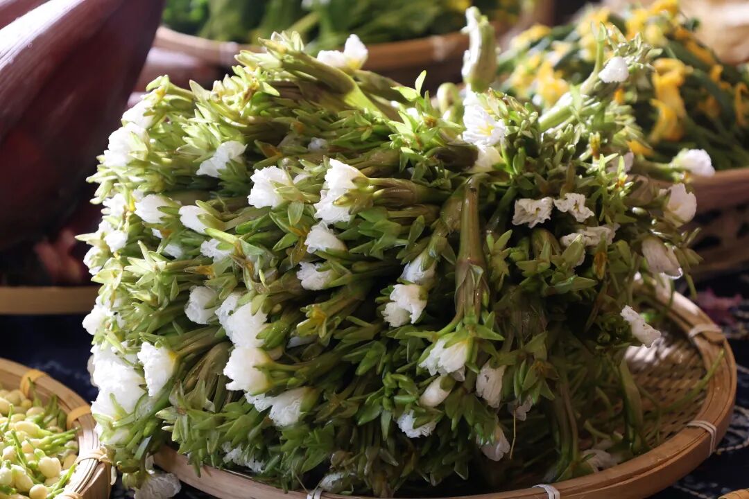 大理人惜春,最懂“不时不食”。春日里,枝头的金雀花、棠梨花,田间的芋头花、芭蕉花,水中的海菜花……皆是大自然馈赠的时令鲜味。