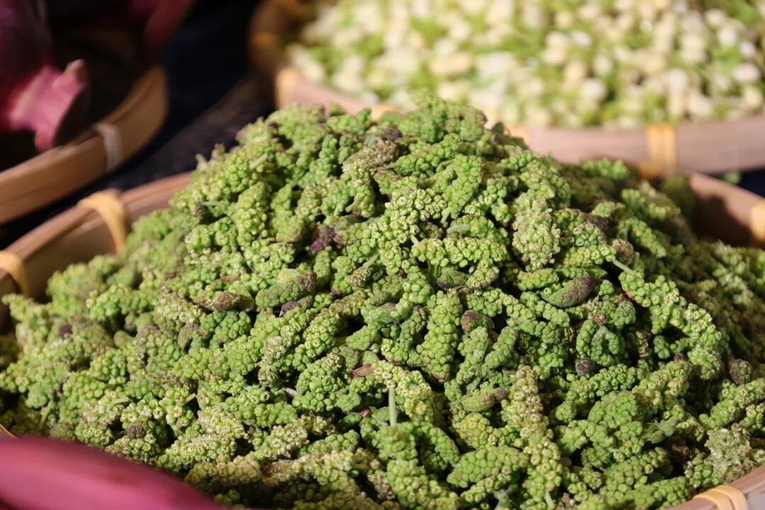 焯水后的苦刺花凉拌,不夺本味。初尝是淡淡的清苦,咽下后舌尖立马泛起悠长回甘,恰似下关春日的风拂过唇齿,清洌利落,只留淡淡花香萦绕不散。