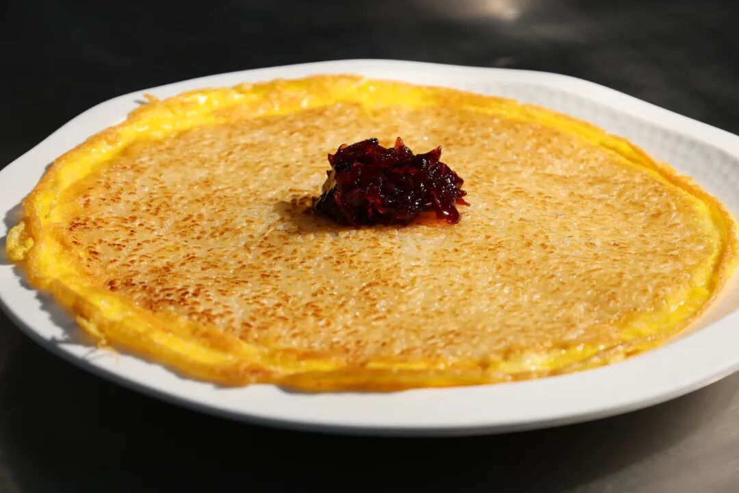 菊花乳扇是小菜里的颜值担当。乳扇被炸成舒展的菊花状,金黄酥香,入口化渣,奶香醇厚绵长,既是开胃前菜,亦是视觉享受,一眼惊艳,一口沉醉。