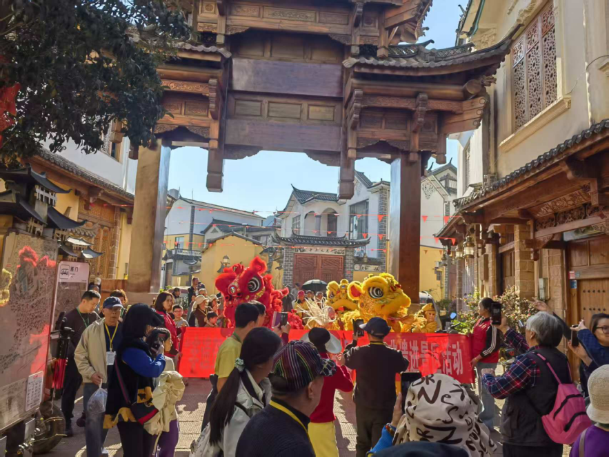 欢腾的龙、狮穿梭在古街老巷,将新春的吉祥与祝福送到游客和居民身边,为景区增添浓郁的年味,同时也为曲硐文化旅游区的宣传引流助力添彩。