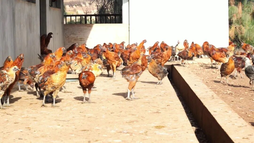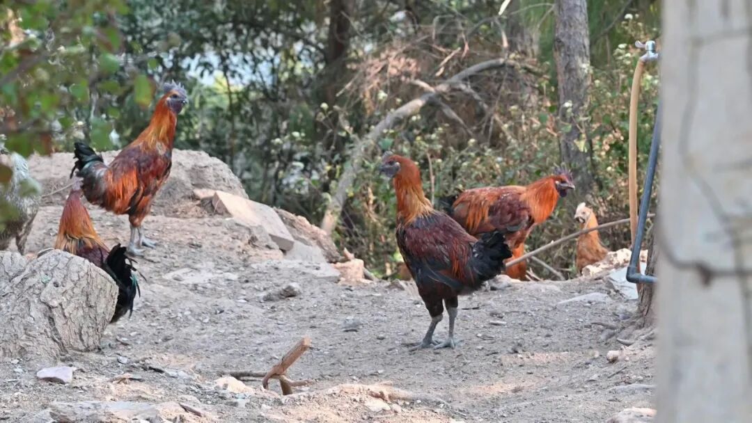 我们的鸡就养在无量山上,放养的鸡群会去山上的茶园、果园、松林里觅食。