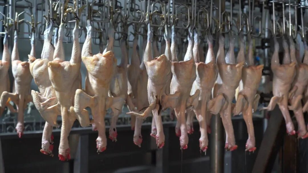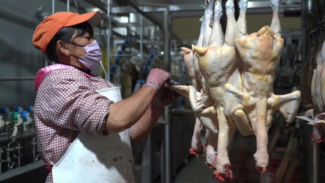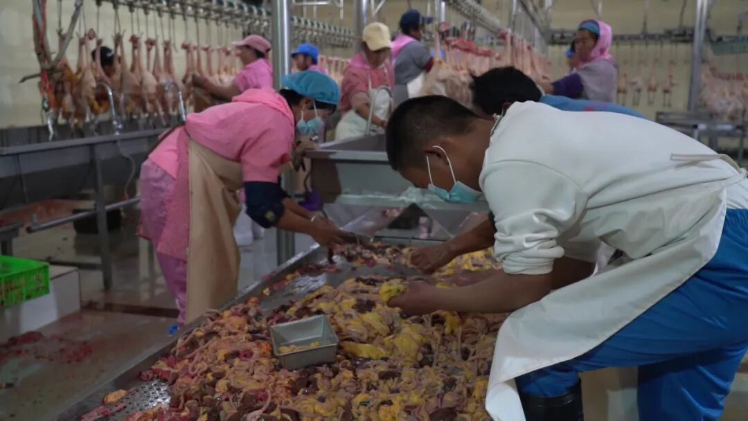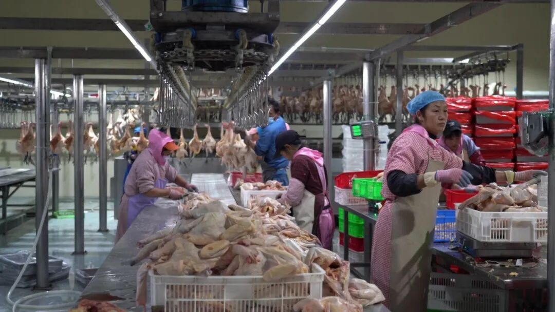 南涧县城内,秉炎农牧加工厂也是一片繁忙景象。自动化屠宰线上,挂鸡、电麻、脱毛、净膛等工序一气呵成,预冷消毒和速冻系统24小时运转,确保鸡肉新鲜。从活鸡入场检疫到产品包装入库,每个环节都有专人抽检。工厂还对60名核心员工进行专项培训,通过柔性排班提升生产效率。