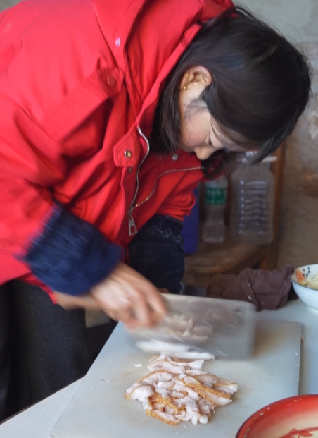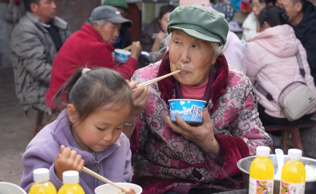 杨定文的妻子窦金雪满面春风地招呼着陆续到场的宾客,利落地组织起前来帮忙的妇女们:择菜、洗菜、切肉。厨房里锅碗瓢盆的碰撞声,与院子里的阵阵谈笑交织在一起,奏响了忙碌而温馨的节日前奏。