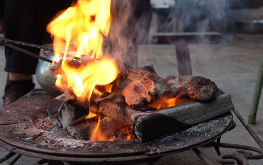 最让人迫不及待的,是把零散肉块与猪肾抹上细盐,直接放在炭火上炙烤。滴落的油脂“滋滋”作响,焦香的肉味混着烟火气弥漫整个院落。烤熟的猪肉被主人家切开,分给老人与孩童;其余亲友则随意围坐,在炭火烧烤中闲话家常。那原汁原味的肉香,是忙碌一年的最好慰藉。