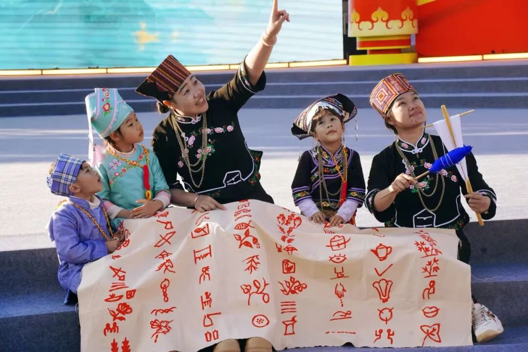 纳西族非遗传承家庭四代同台演绎《天雨流芳》——该词在纳西语中意为“读书去吧”,融合杜甫诗句与古歌,展现家风传承。
