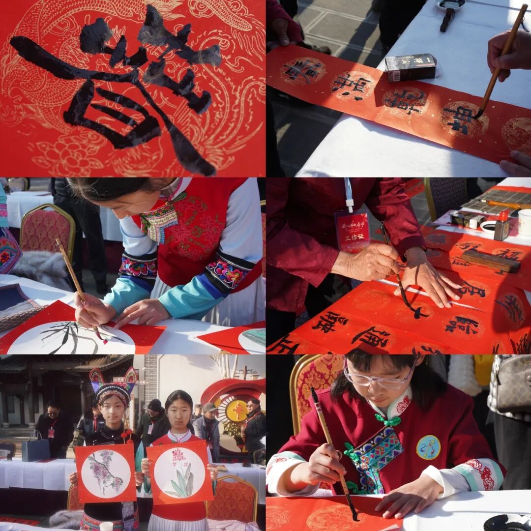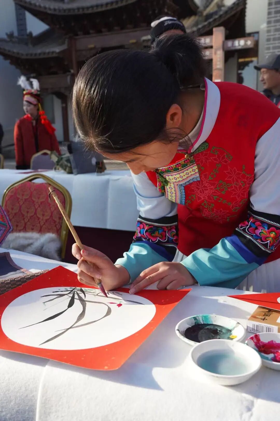 现场,剑川木雕、布扎、刺绣、甲马、黑陶等非遗集中展示,来自全国的书法名家与本地书法爱好者现场挥毫泼墨,为市民游客送上手写春联与“福”字。