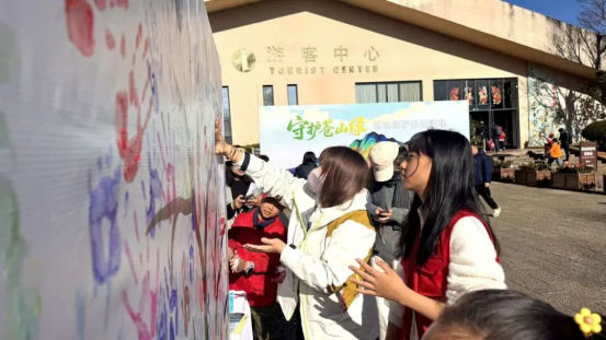 “共筑生命之树”承诺墙前,游客以手印添彩,汇聚成生机盎然的树冠,共同许下“不违规用火、不擅闯保护区”的庄严承诺。