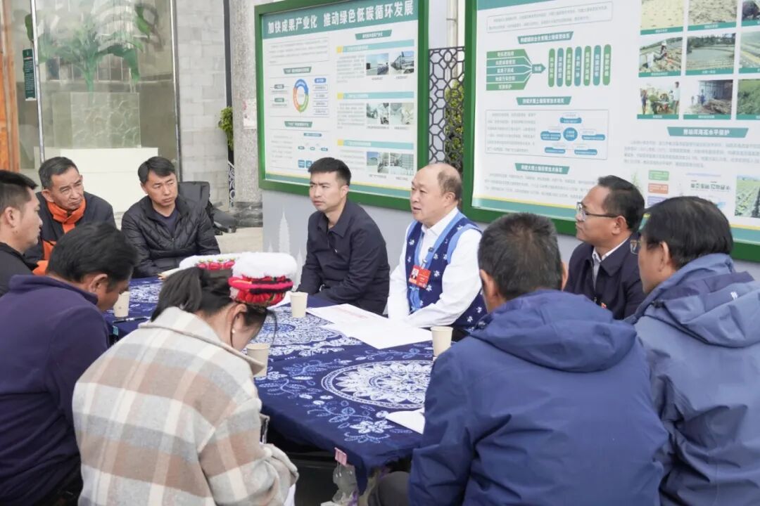“政府工作报告指出要扎实推进乡村全面振兴,坚持把‘三农’工作作为重中之重,深入学习运用‘千万工程’经验,提高强农惠农富农政策效能,进一步夯实农业农村基础、提升发展质效。这对我们银桥镇和整个大理市持续做强特色农业、推进乡村振兴具有提纲挈领的指导意义。”宣讲结束后,苏家恩和干部群众、驻站代表、农户代表们进行了交流讨论,与大家探讨如何将全国人代会精神与大理实际相结合,为本地发展提供方向引领与政策指导。