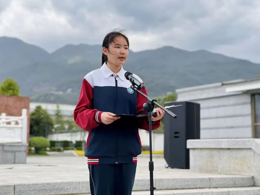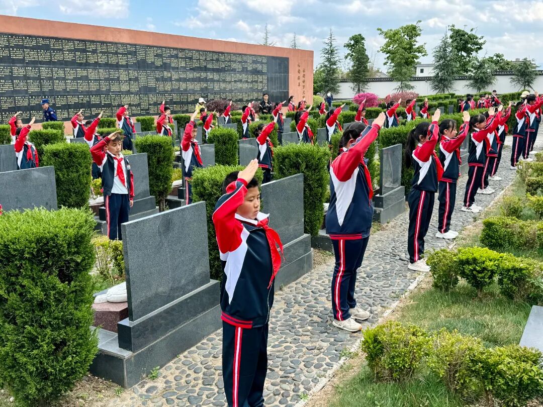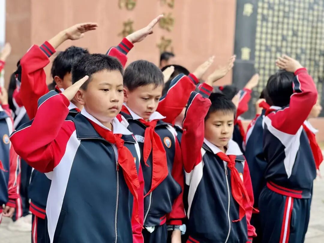 默哀仪式结束后,优秀共青团员代表和优秀少先队员代表先后献词,少先队员们齐声献唱《我们是共产主义接班人》,嘹亮的歌声在陵园上空回荡,象征着红色基因代代相传。