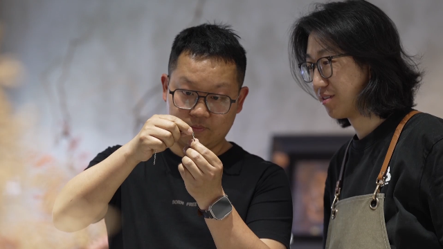 段正海的困惑,在一位外来者的到来后找到了解法。一年前,来自吉林的大漆技艺手艺人孙乙程被鹤庆成熟的银器产业链和开放包容的创作氛围吸引,从一名游客变成了“新村民”。他不仅带来了行囊,更带来了传承已久的大漆技艺。当银器的冷冽遇上大漆的温润,一种全新的跨界美学诞生了。