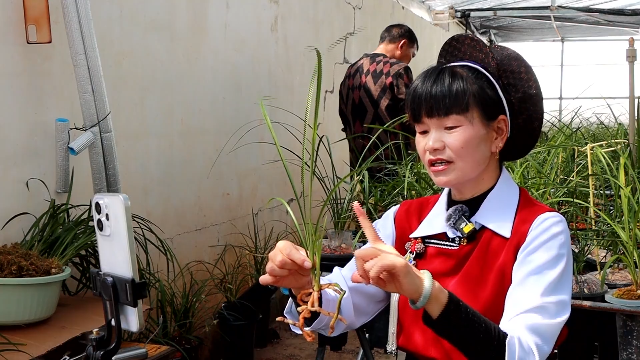 在鹤庆,兰花种植已有上千年的历史,过去作为群众庭院中的一种“雅趣”,兰花的交易流通极度依赖传统实体市场,规模小、抗风险能力弱。如何让“小而美”的庭院经济变成“大而强”的富民产业,李桂芬的“破圈”给出了答案。