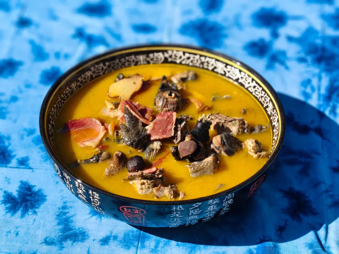 这是云龙人招待贵客的招牌菜,将火腿的咸香、土鸡的鲜嫩与酸木瓜的清冽完美融合。鸡肉鲜嫩,汤汁开胃,鸡肉吸饱了火腿的咸香与木瓜的酸甜,一口下去满是山野风味。