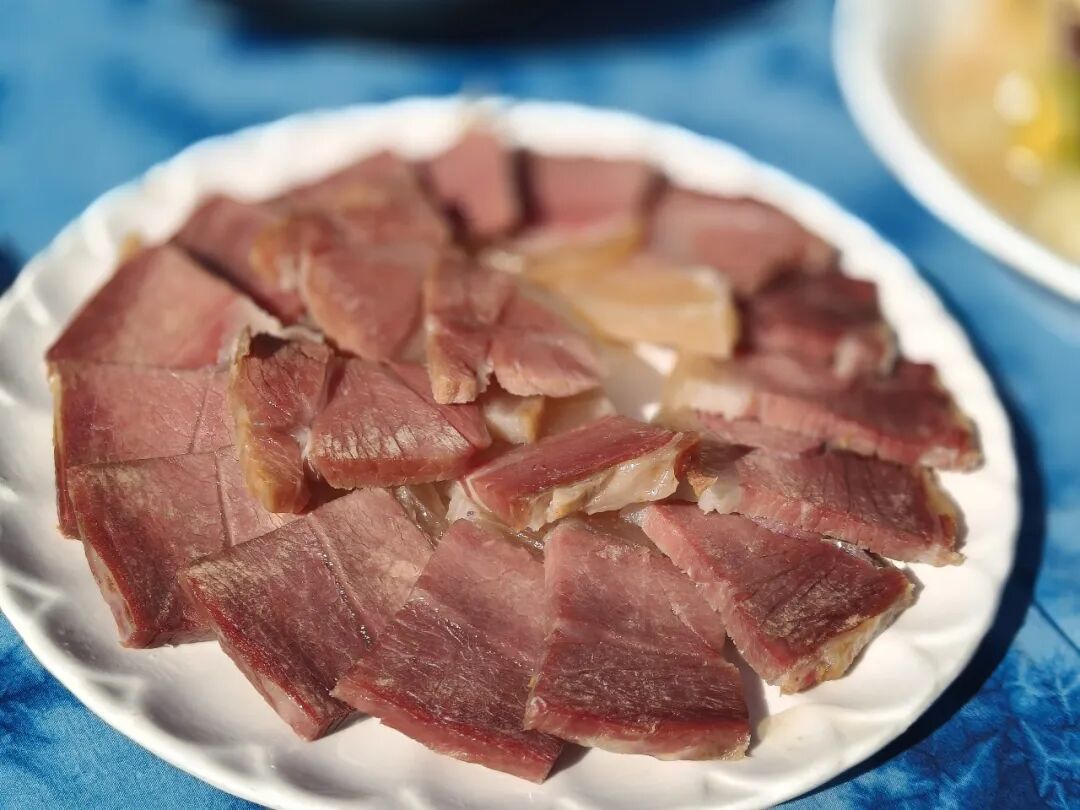 最能凸显诺邓火腿本味的吃法,简单却不简约。煮好的火腿趁热切片,瘦肉绯红如玛瑙,脂肪晶莹如琥珀,入口咸淡适中,带着独有的奶香与脂香,咀嚼间回味悠长。无需任何调料,纯粹的盐香与肉香在舌尖弥漫,尽显诺邓火腿的本真风味。