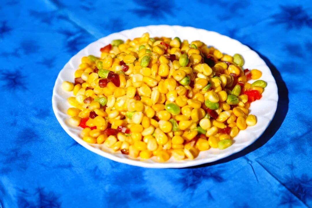 “两亩地”是云南人对玉米和毛豆的戏称,这道菜是下饭神器。玉米的清甜、毛豆的软糯与火腿的咸香交织,口感丰富,脆嫩爽口。