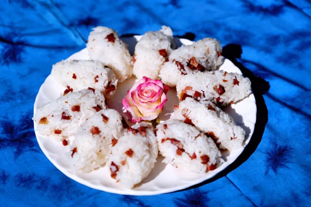 火腿饭团由火腿炒饭演变而来,将热气腾腾的香糯米饭,与煸炒至焦香的火腿丁一同翻炒拌匀,趁热捏合成团。饭团温热时口感最佳,米饭的清甜裹挟着火腿的咸香,一口下去满是质朴的烟火暖意。