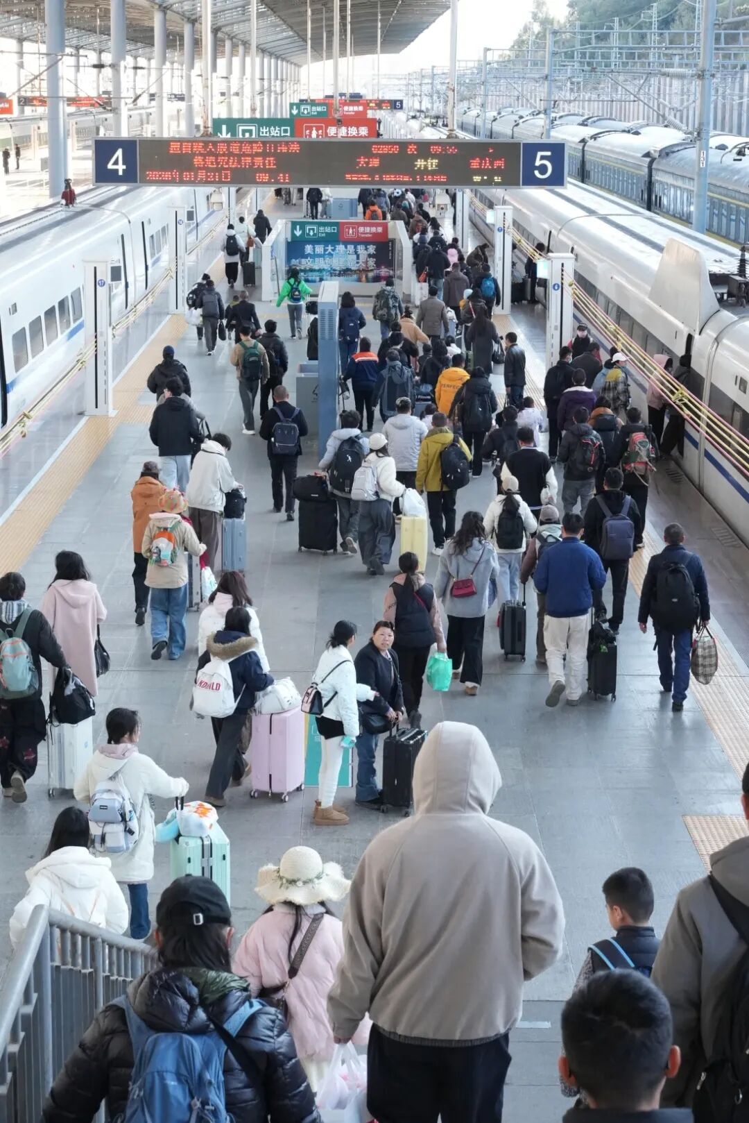 具体来看:1月下旬学生客流率先启动,随后探亲、旅游客流接续涌出,共同推高客流总量。节后3月初伴随高校开学,又将与务工客流、返程探亲客流叠加,形成长时间的大客流高峰状态;与往年学生放假和开学时段与春运高峰时段相对错开相比,今年则是完全重合,导致客流更为集中。