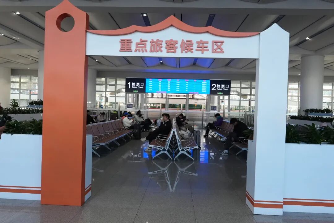 在购票环节,调整窗口功能布局,根据客流特点动态保障开窗数量,满足旅客购票需求;在车票验证环节,充足配置人工验证口和自助闸机,确保通行顺畅;在安检环节,全面改造升级安检设备,更换老旧设施,采用“一个安检仪 + 两个安全门”的模式,大幅提升安检效率;在检票与上车环节,对重点列车合理增加检票口,全面排查维护扶梯、垂直电梯;站台设置安全绳隔离,保障旅客走行顺畅和候车安全,让整个出行流程更高效、更有序。