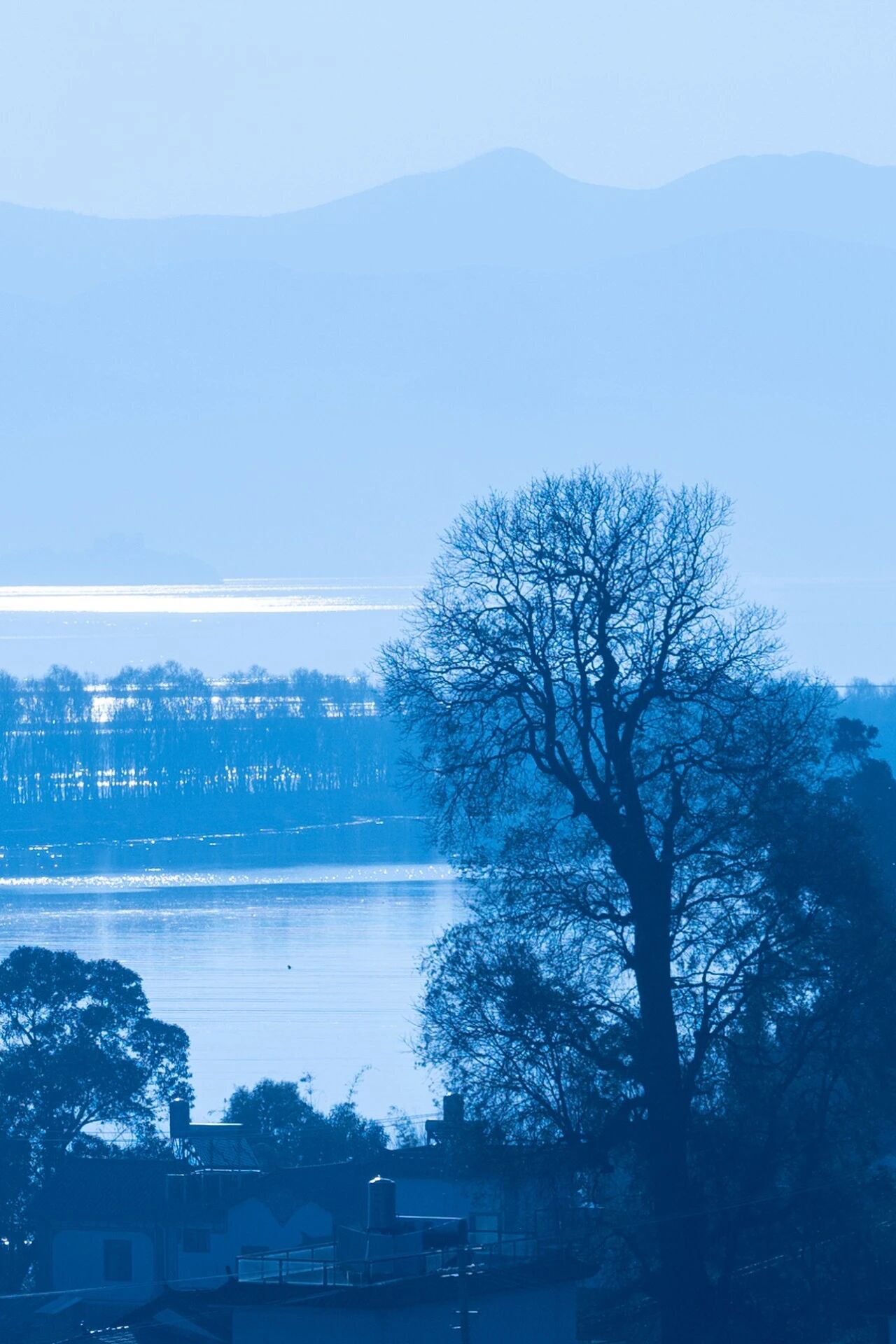 阳光洒在洱海上