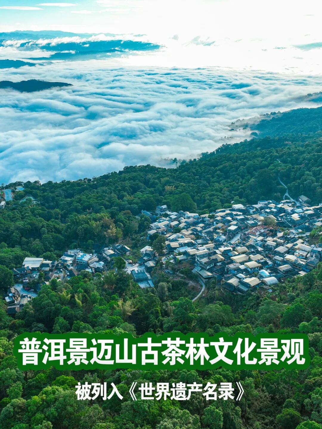 公元10世纪以来,布朗族、傣族先民先后迁徙至景迈山定居。他们在这里认识、利用野生茶树,依托森林生态系统,探索出“林下茶”种植技艺,逐步形成绵延万亩的古茶林,书写了人与自然和谐共生的生动篇章。2023年9月17日,“普洱景迈山古茶林文化景观”成功列入《世界遗产名录》,成为全球首个茶主题世界文化遗产。