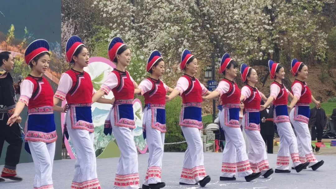 活动在以“奇峰千树雪 策‘马’踏春光”为主题的文艺演出中拉开帷幕,舞蹈《奇峰梨花开》《霸王鞭 八角鼓》《金钉子》,歌曲《母亲是中华》《彝歌联唱》以及魔术表演等节目让现场观众感受了民间艺术的魅力。