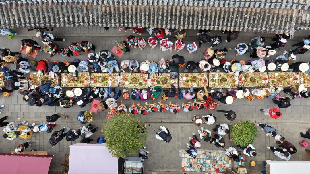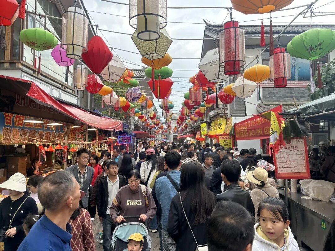 中午时分,南诏古街上,158张长桌依街而设、连成长龙,948名游客共同品尝牛头宴。唢呐迎宾、彝族盛装敬酒,仪式感拉满,场面在社交平台刷屏。