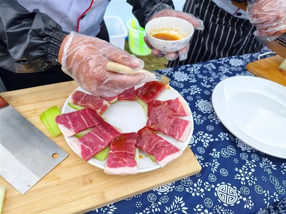 此次竞赛吸引了全县火腿生产企业、专业合作社、个体从业者及同济大学研究生支教团在内的12组选手同台竞技、各展绝活。活动现场暖意氤氲、香气绵长,参赛选手们各显神通,既坚守诺邓火腿古法技艺的精髓,遵循自然发酵、慢养精酿的传统理念,又大胆突破思维边界,在食材搭配、烹饪手法、呈现形式上创新发力,为这道千年非遗美食赋予全新形态与独特风味。