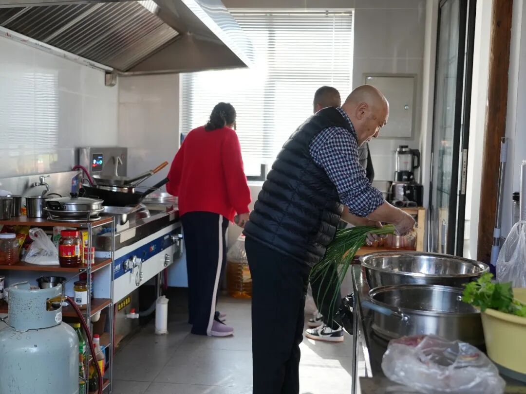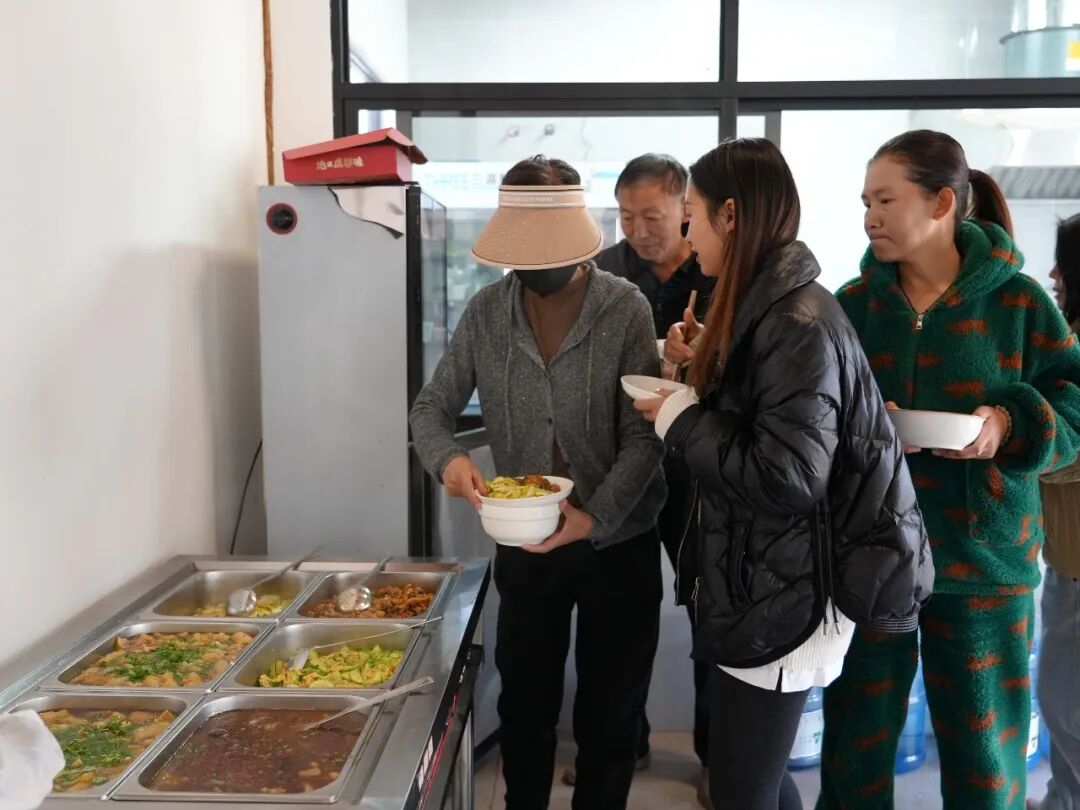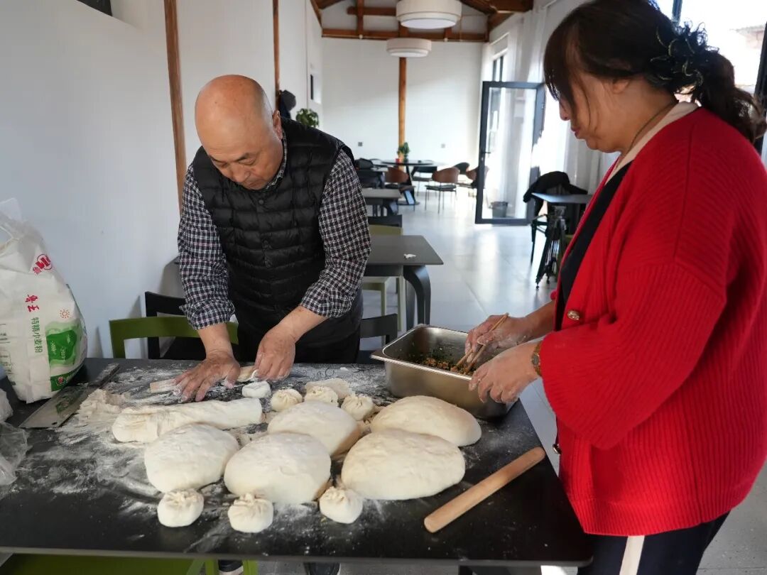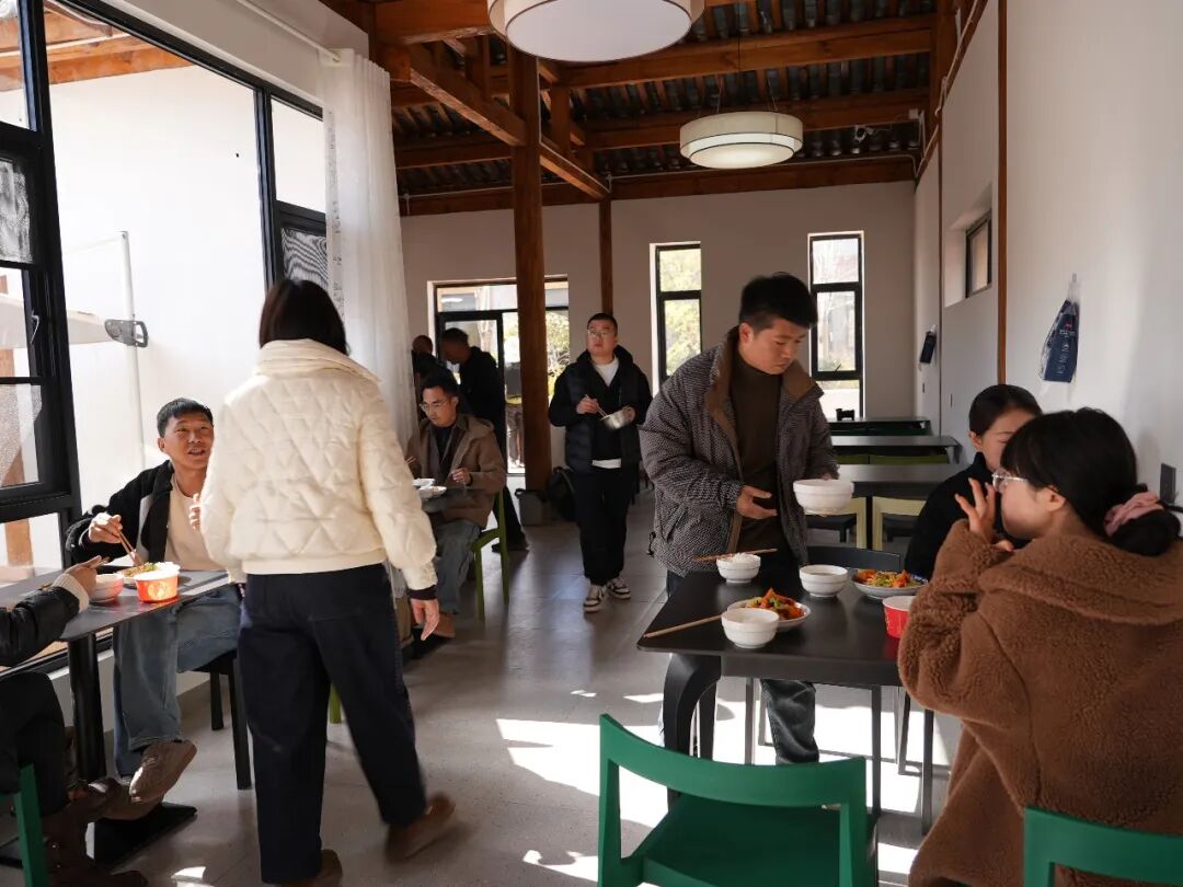 正午时分,旅居客们会前往村里统一建设的食堂吃饭,这里既是日常就餐点,更是社群活动的核心阵地,北方旅居客一句“想吃包子”的临时起意,大家也都积极响应,一同赶集采购、揉面擀皮,在合作中拉近距离。篝火晚会、烧烤晚会等活动每月在广场举办,来自五湖四海的“新村民”在烟火气中打破隔阂。