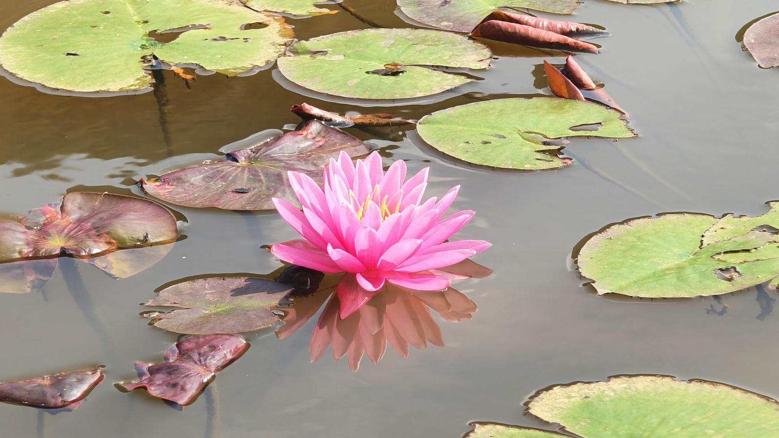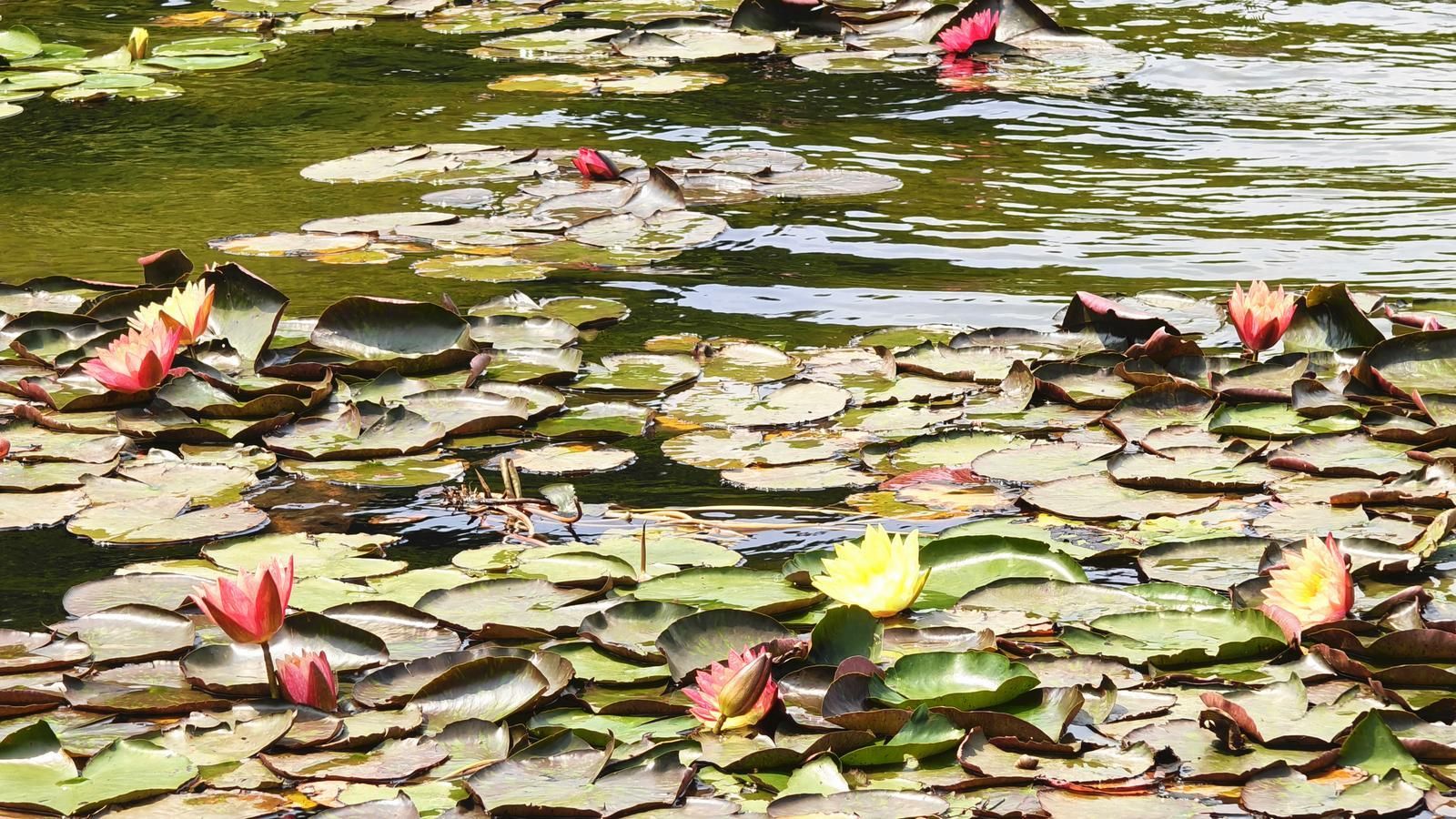其中,红黄双色睡莲成为花海中的一大亮点,花瓣红黄交织、色彩明艳,独特的花色搭配格外吸睛,成为游客打卡拍照的焦点,为这片睡莲花海增添了别样的视觉亮点。