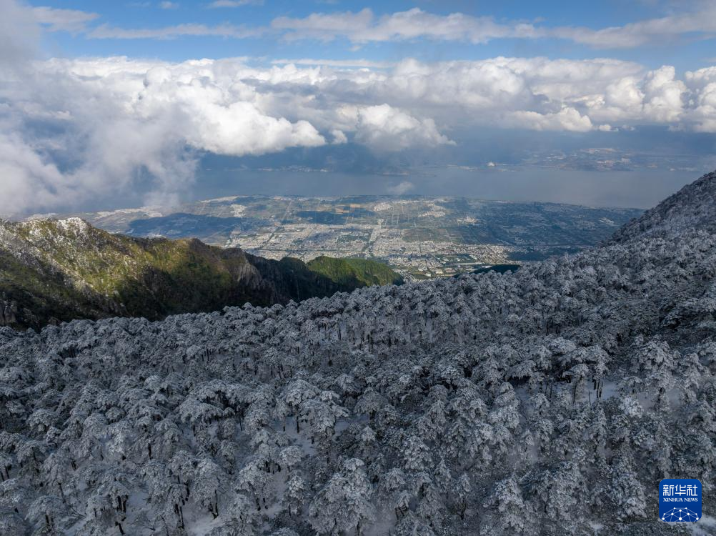 受冷空气影响,云南大理苍山迎来2025年入冬后的首场降雪。银装素裹的山林与山脚下的洱海、古城相映成趣,构成一幅水墨画卷。