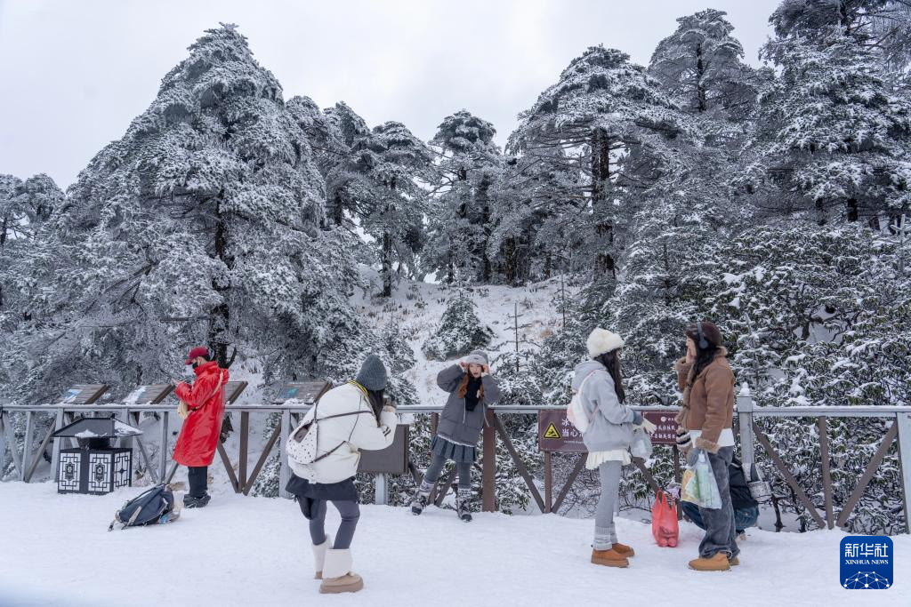11月24日,游客在云南大理苍山景区雪景中拍照留念。新华社发(罗铸摄)