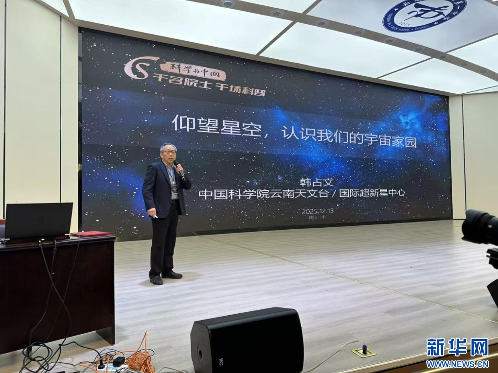 首场启动报告在保山第一中学举行。中国科学院院士、云南天文台研究员韩占文以《仰望星空,认识我们的宇宙家园》为题,为1500名学生代表带来一场生动精彩的天文科普报告。韩院士以通俗的语言、丰富的影像资料,系统讲解了星空认知、恒星研究、宇宙测量及未来展望等内容,并与学生亲切互动,耐心解答提问,在轻松愉快的氛围中激发了青少年对宇宙科学的浓厚兴趣。