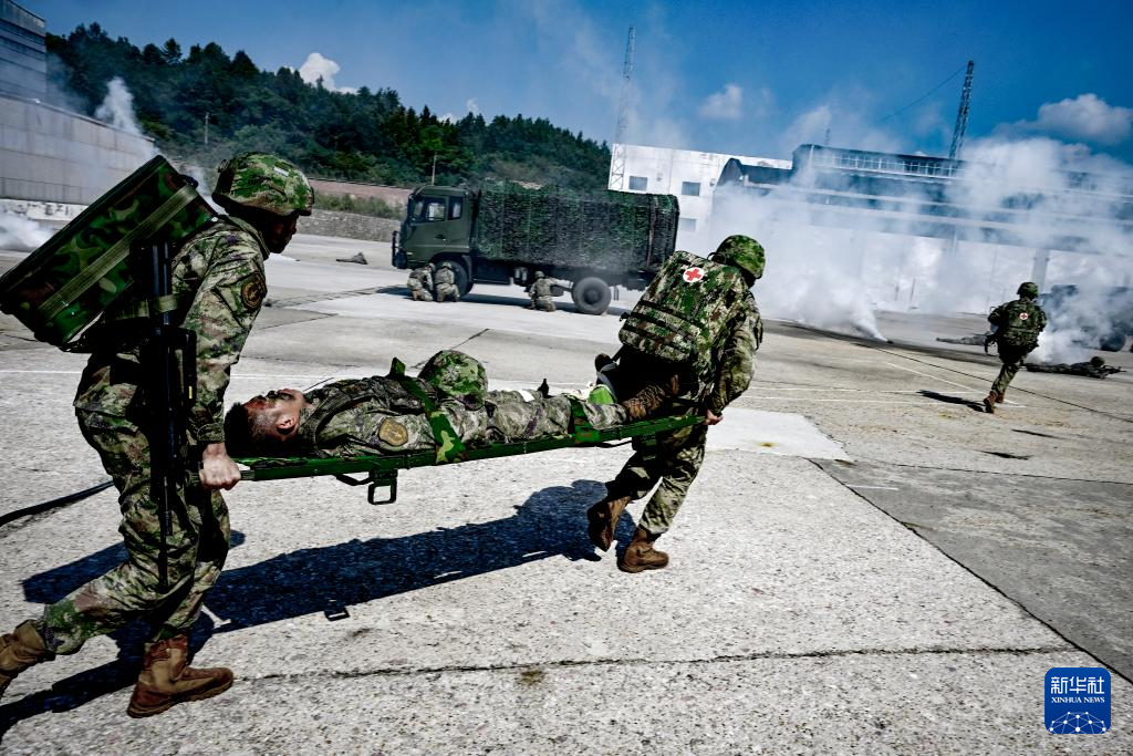 火箭军某旅发射二营开展战场救治训练(资料照片)。新华社发(刘明松摄)