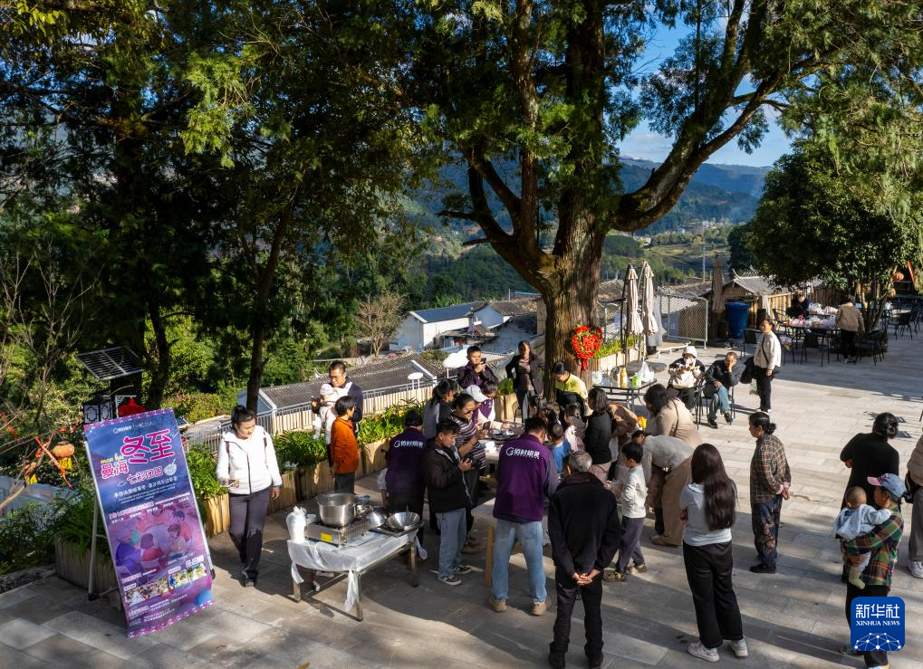 12月20日,游客在曼海村村广场体验冬至做汤圆活动。新华社记者 陈欣波 摄