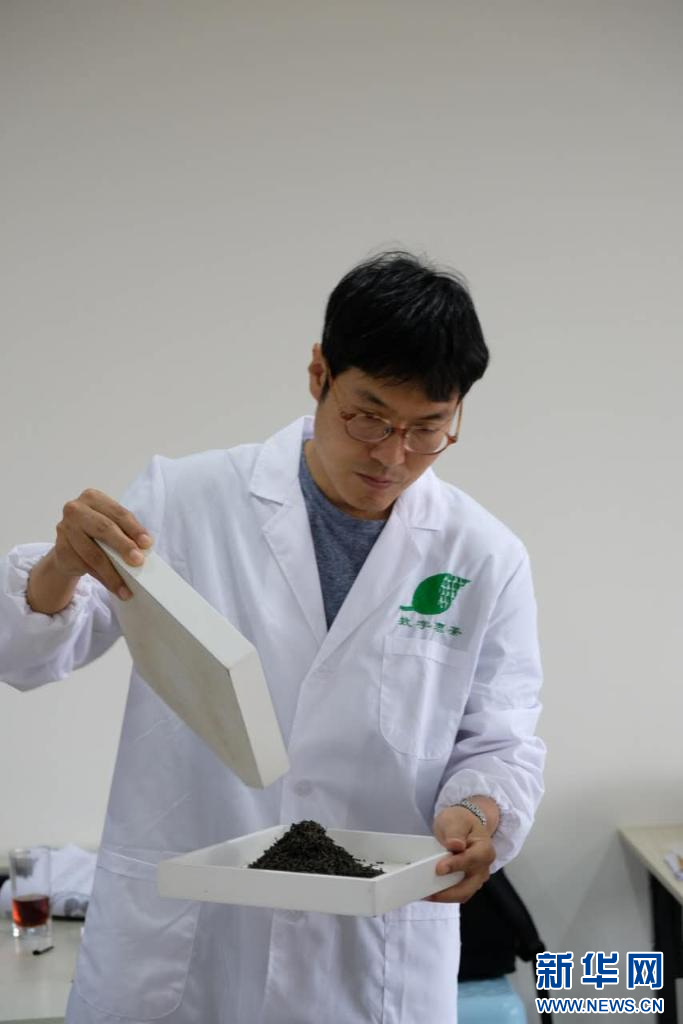 沈远载作为评茶员在进行茶叶品鉴。受访者供图
