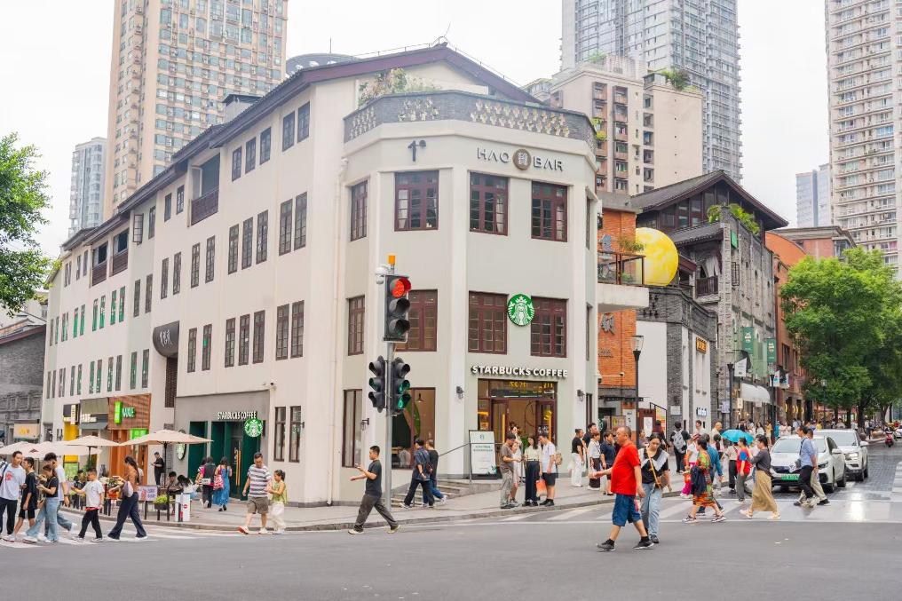 穿过人流如织、高楼林立的解放碑商圈,步行百余米,喧嚣声便渐次褪去。眼前景致陡然切换:斑驳的砖墙爬满时光痕迹,静默矗立间诉说着百年时间的沧桑;巷陌两侧的咖啡馆内,三五好友倚窗闲谈,温热的咖啡香气漫过窗棂,与老街的烟火气轻轻相拥。