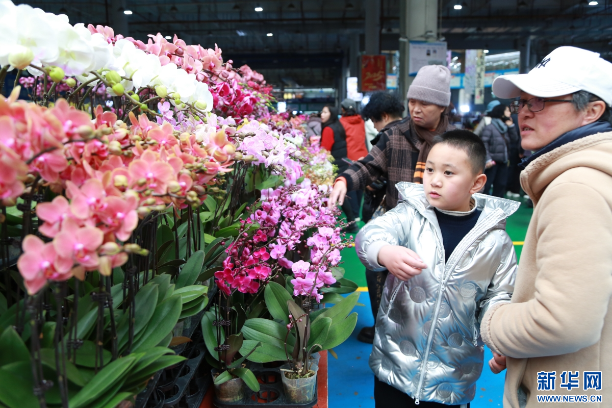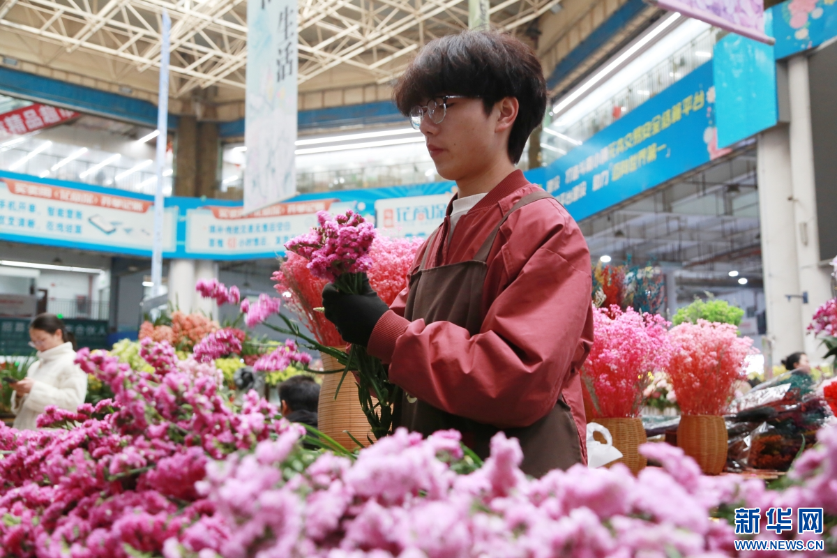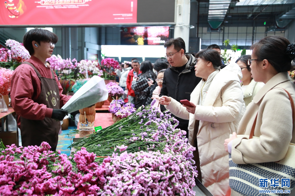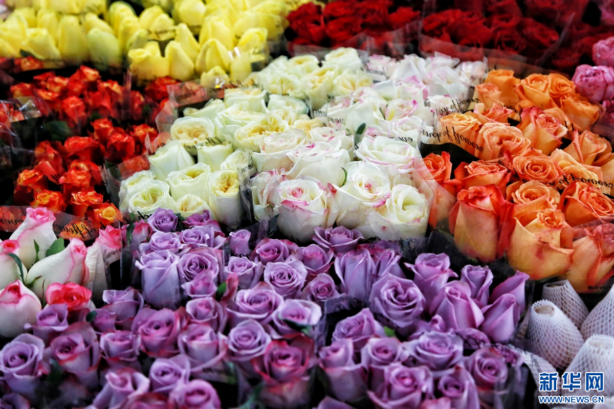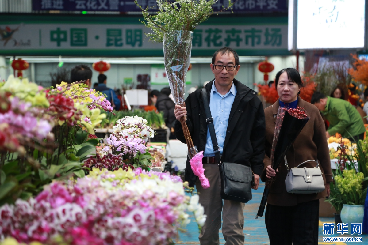 2月8日,人们在云南昆明斗南花卉市场内选购鲜花。新华网发(薛莹莹 摄)