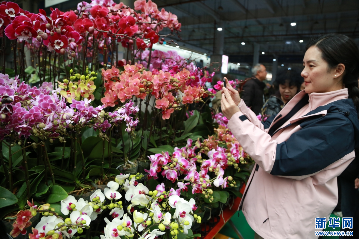 春节临近,浓浓的年味带旺花卉市场,众多市民和游客来到云南昆明斗南花卉市场选购鲜花,迎接新春佳节的到来。