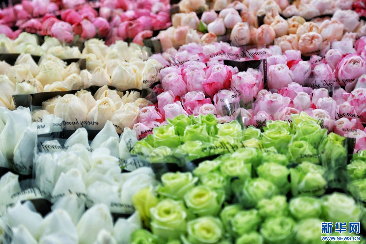 2月8日,云南昆明斗南花卉市场人来人往。新华网发(薛莹莹 摄)