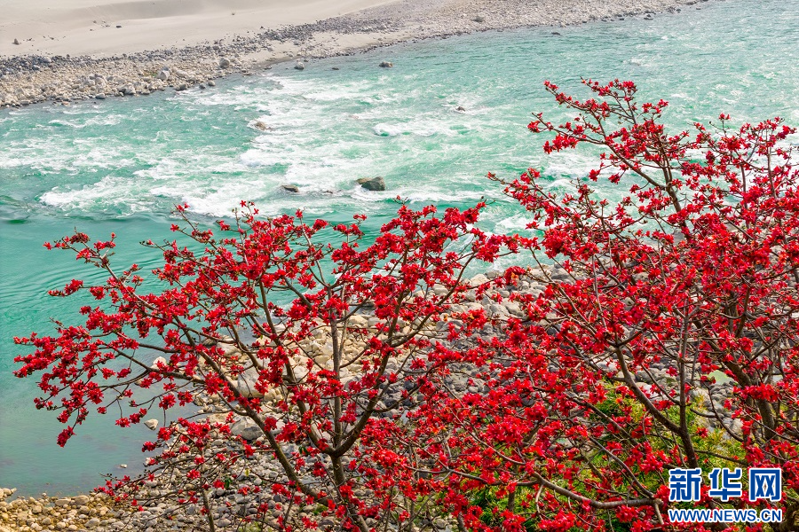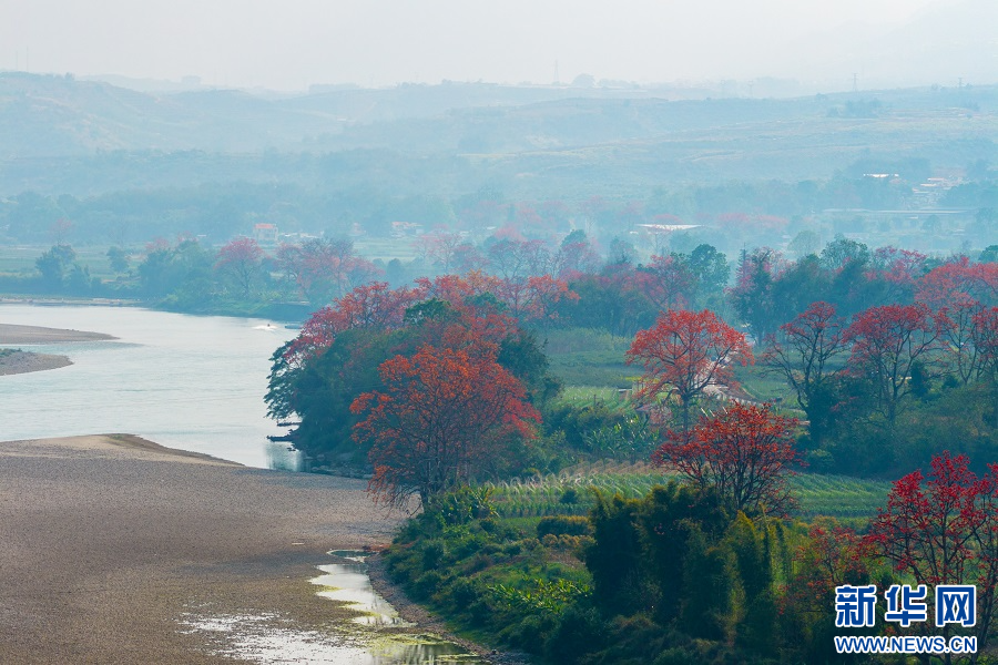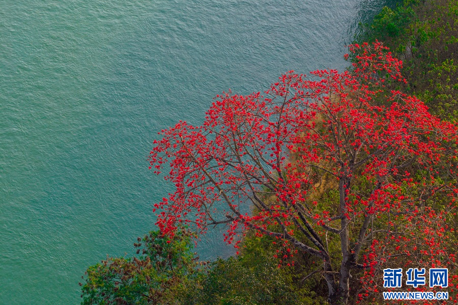 木棉花开映怒江(3月1日 摄)。新华网发(保山市委宣传部 供图)