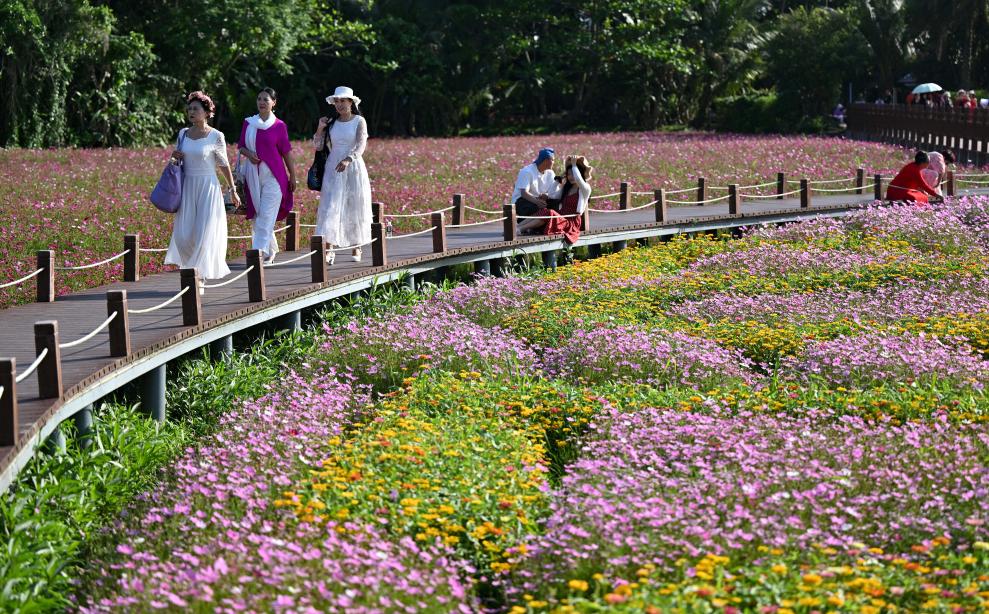 微风拂过,层层花浪翻滚,花香弥漫,吸引大量游客前来打卡拍照。“今年请了专业团队设计,既漂亮又独特,气味也特别香!”南强村党支部书记符翠说,每年的这个时候,作为博鳌年会的“田园会客厅”,不仅南强村的花田会如约绽放,坐落在琼海市万泉河入海口两岸的多个“田园会客厅”,都在精心装扮迎接盛会到来。