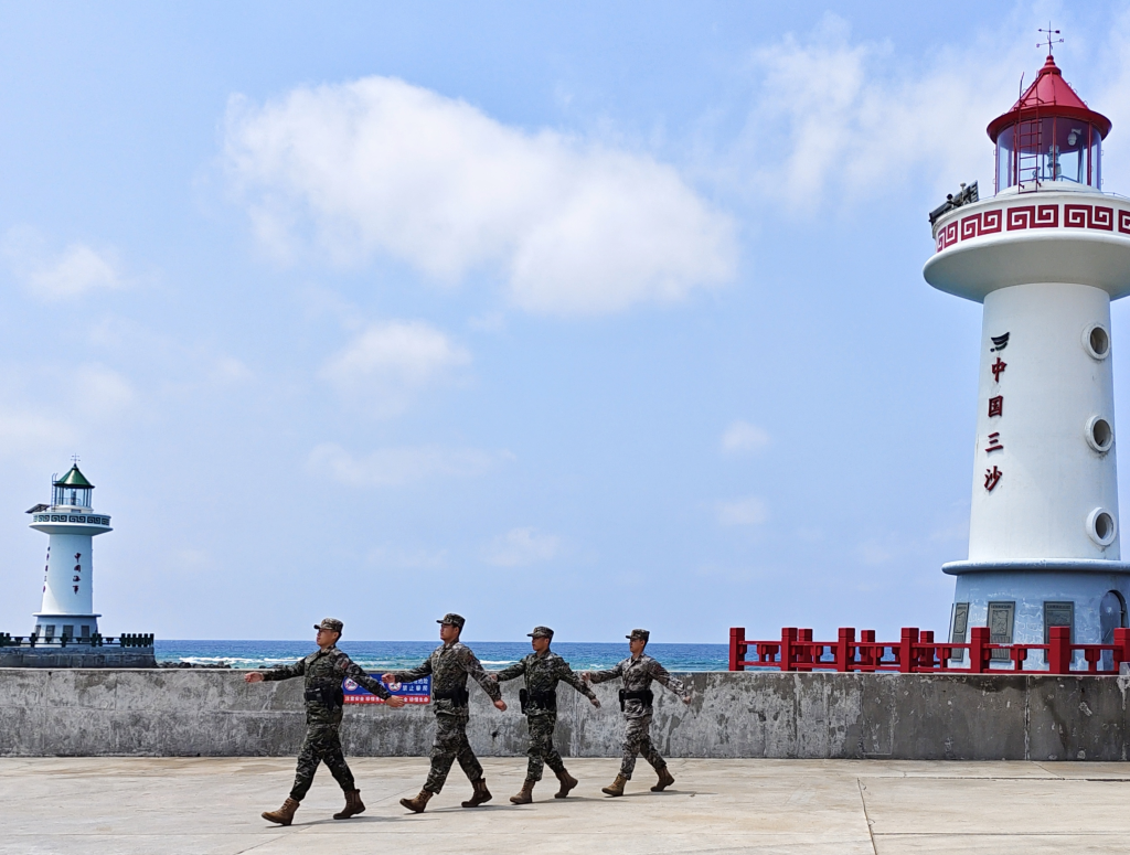↑官兵在永兴岛巡逻