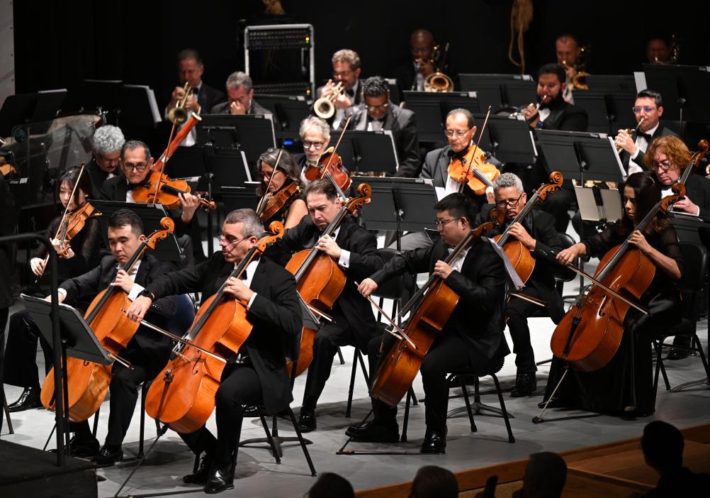 4月7日,在巴西首都巴西利亚,中巴两国乐手在“中巴文化年”专场音乐会上演奏。新华社记者金皓原摄