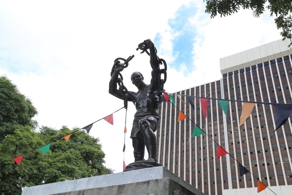这是3月18日在赞比亚首都卢萨卡拍摄的自由雕塑。新华社记者陈为摄