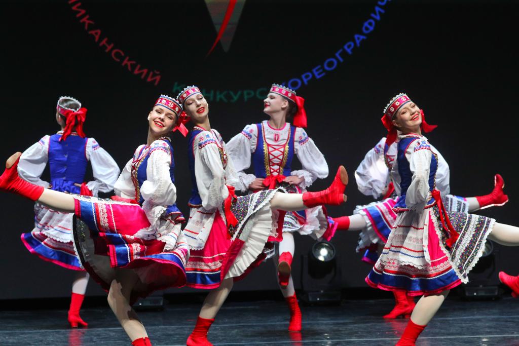 4月4日,在白俄罗斯首都明斯克,选手在白俄罗斯舞蹈艺术大赛决赛上表演。新华社发(任科夫摄)
