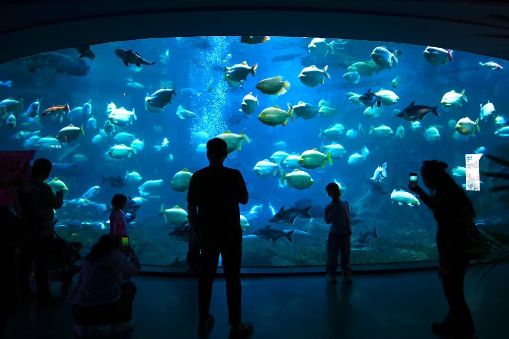 4月6日,游客在河南省郑州市中牟县海昌海洋公园游玩。新华社记者郝源摄