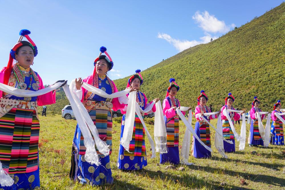 2024年9月29日,云南省迪庆藏族自治州的群众在演唱藏族歌曲。新华社记者王静颐摄