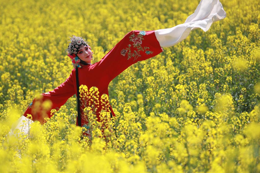 4月1日,戏曲演员在陕西省渭南市临渭区蔺店镇李十三村举行的展演活动中表演。新华社发(崔正博摄)